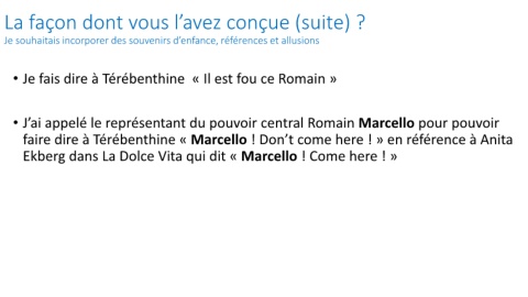 • Je fais dire à Térébenthine « Il est fou ce Romain »
