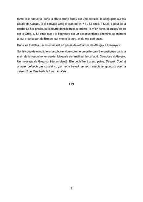 Un message de Greg sur l’écran bleuté. Elle déchiffre à grand peine. Désolé. Contrat