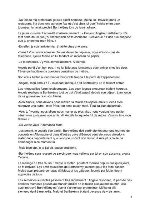 Angèle expliqua à Barthélémy tout ce qui s’était passé depuis son départ. L’annonce