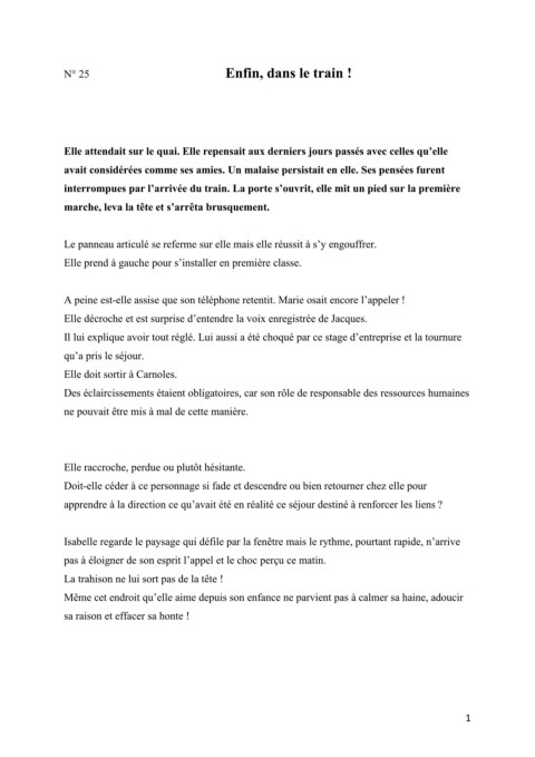 interrompues par l’arrivée du train. La porte s’ouvrit, elle mit un pied sur la première