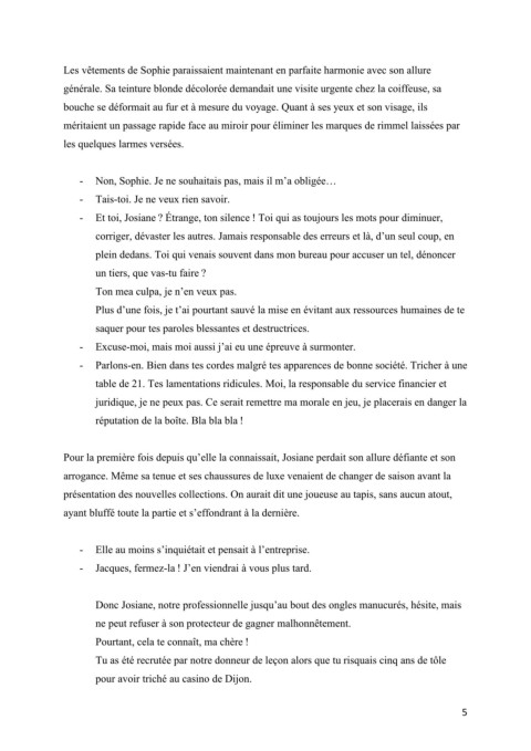 - Et toi, Josiane ? Étrange, ton silence ! Toi qui as toujours les mots pour diminuer,