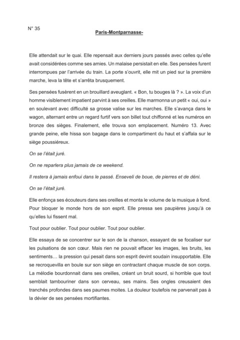 interrompues par l’arrivée du train. La porte s’ouvrit, elle mit un pied sur la première