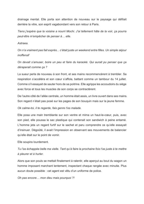 Alors que son pouls se mettait finalement à ralentir, elle aperçut au bout du wagon un