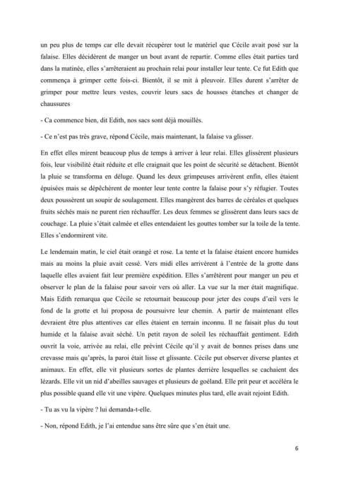 crevasse mais qu’après, la paroi était lisse et glissante. Cécile put observer diverse plantes et