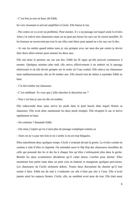 Elles marchèrent donc quelques temps. Cécile s’extasiait devant la grotte. La rivière coulait en