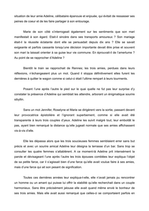 situation de leur amie Adeline, célibataire épanouie et enjouée, qui évitait de ressasser ses