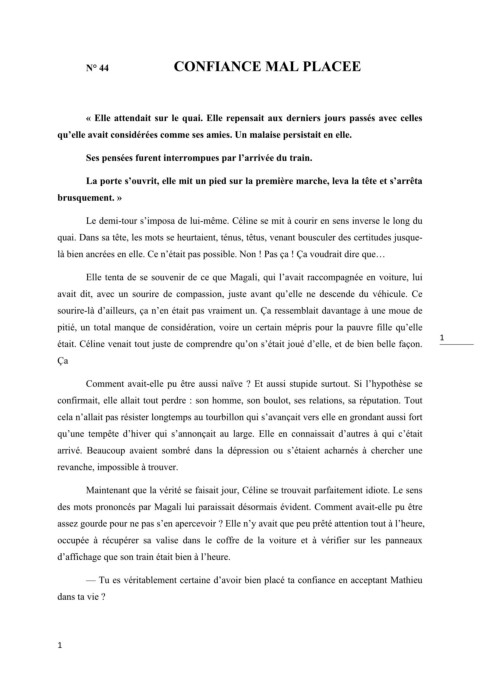 N° 44 CONFIANCE MAL PLACEE