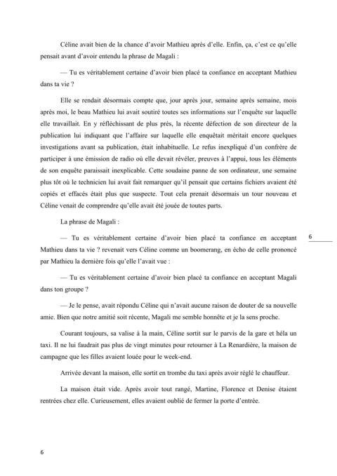 — Tu es véritablement certaine d’avoir bien placé ta confiance en acceptant 6