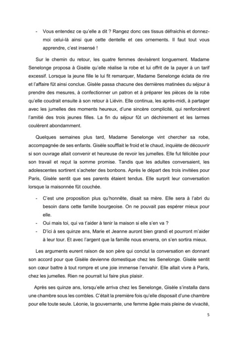 son accord pour que Gisèle devienne domestique chez les Senelonge. Gisèle sentit