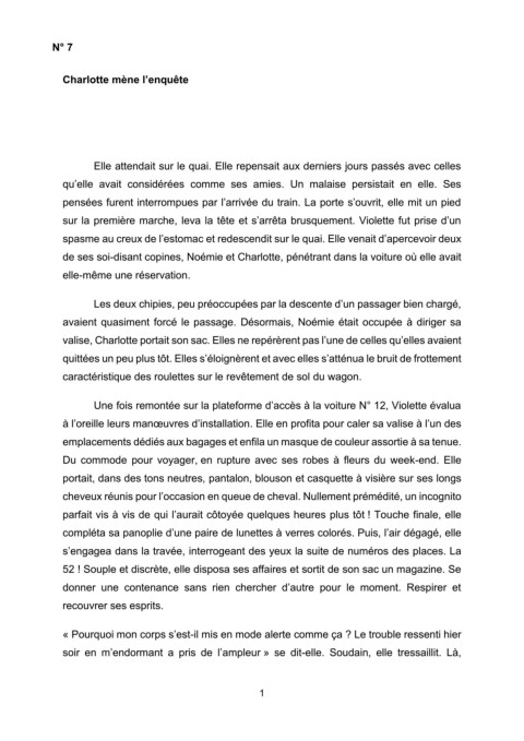 pensées furent interrompues par l’arrivée du train. La porte s’ouvrit, elle mit un pied