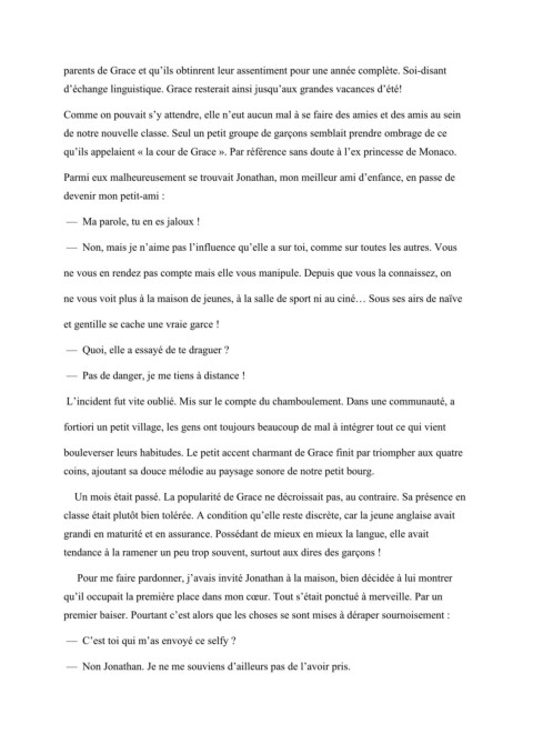 d’échange linguistique. Grace resterait ainsi jusqu’aux grandes vacances d’été!
