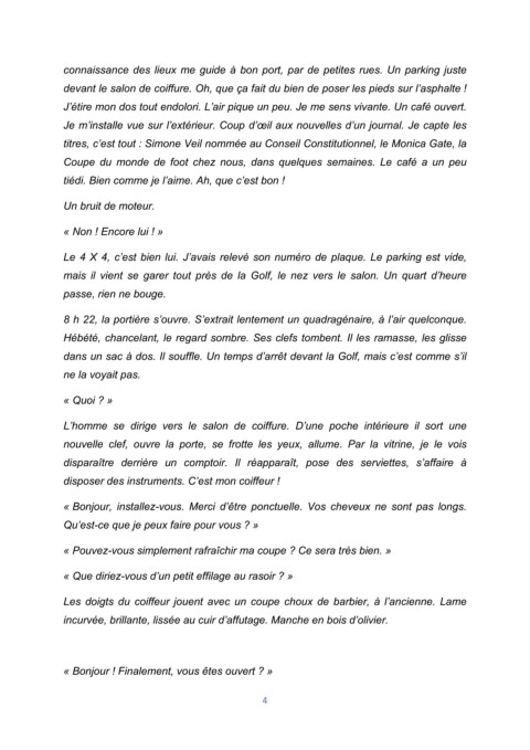 « Bonjour, installez-vous. Merci d’être ponctuelle. Vos cheveux ne sont pas longs.