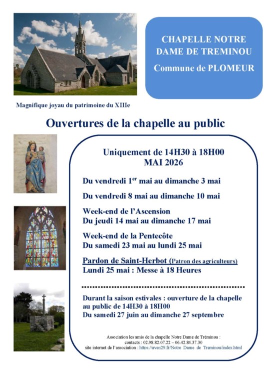 Ouvertures 2026 Chapelle Notre dame de Tréminou