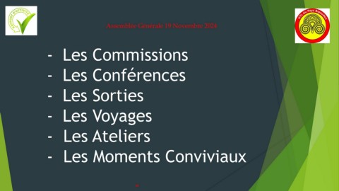 Assemblée Générale 19 Novembre 2024 - Les Commissions - Les Conférences - Les Sorties - Les Voyages - Les Ateliers - Les Moments Conviviaux 29